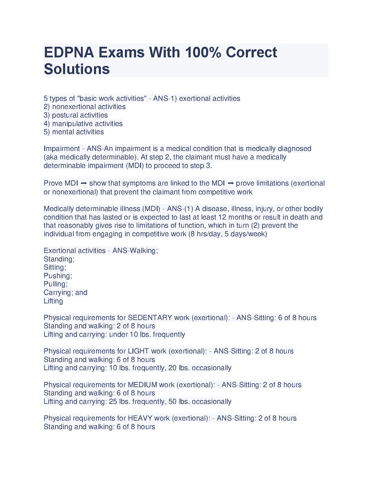 Ace your EDPNA exams with confidence! This comprehensive study guide offers 100% accurate solutions and expert insights to help you pass on your first attempt. Avoid resits and achieve your goals effortlessly.