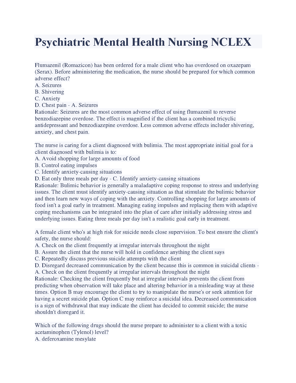 Ace the Psychiatric Mental Health Nursing NCLEX-RN with the most comprehensive review available! This updated 7th edition offers a wide range of review questions and practice exam questions, all aligned with the latest NCLEX-RN test plan. Comprehensive and easy-to-use, this resource is perfect for students preparing for the NCLEX-RN exam. The practice questions are designed to mimic the real exam, helping you build confidence and test-taking skills. Key features include: * Comprehensive coverage of all essential topics in psychiatric mental health nursing * Over 1,500 practice questions with detailed rationales * Mock exams to simulate the real NCLEX-RN exam * A study guide that helps you prioritize your study time * A comprehensive glossary of terms