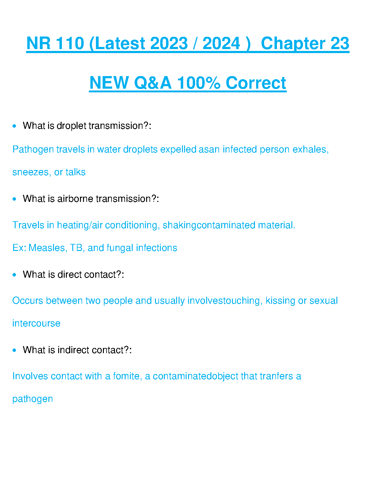 This resource contains a collection of updated and accurate Q&A for NR 110, covering Chapter 23. Designed to help nursing students ace their exams on the first attempt, avoiding the need for resits. This is a must-have for anyone wanting to achieve academic success and a strong foundation in nursing knowledge.