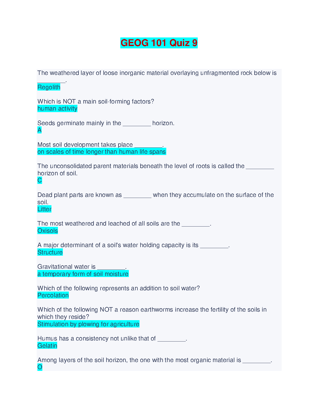 GEOG 101 Quiz 9: Mastering Soil Science for Exam Success (2024-2025 Edition)
