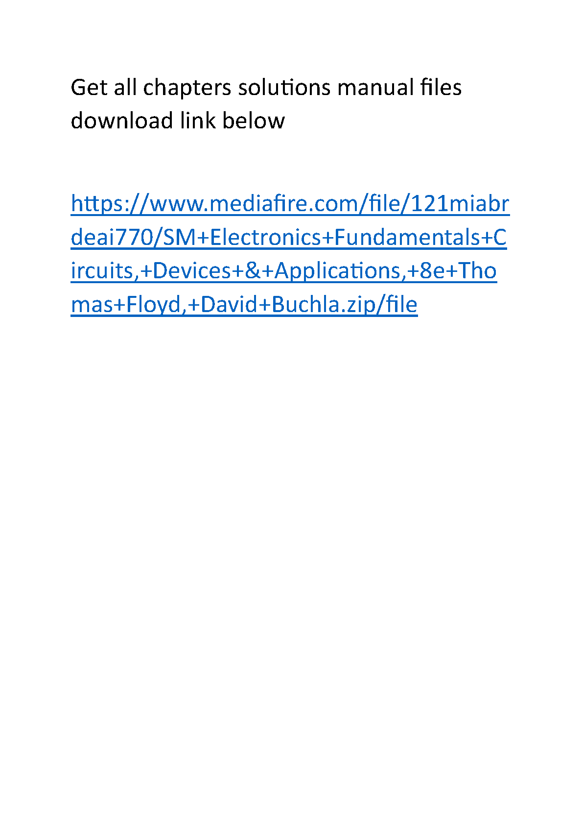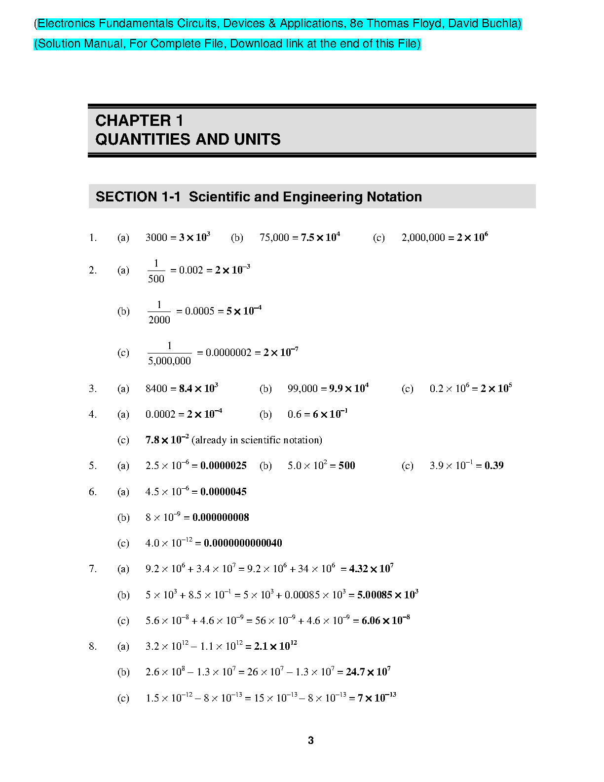 This is the solution manual to the 9th edition of the Electronics Fundamentals textbook by Floyd and Buchla. It contains detailed solutions for all of the practice problems in the textbook, covering topics such as circuit theory, semiconductors, digital electronics, and more. The manual is a valuable tool for students who want to improve their understanding of electronics and prepare for exams.