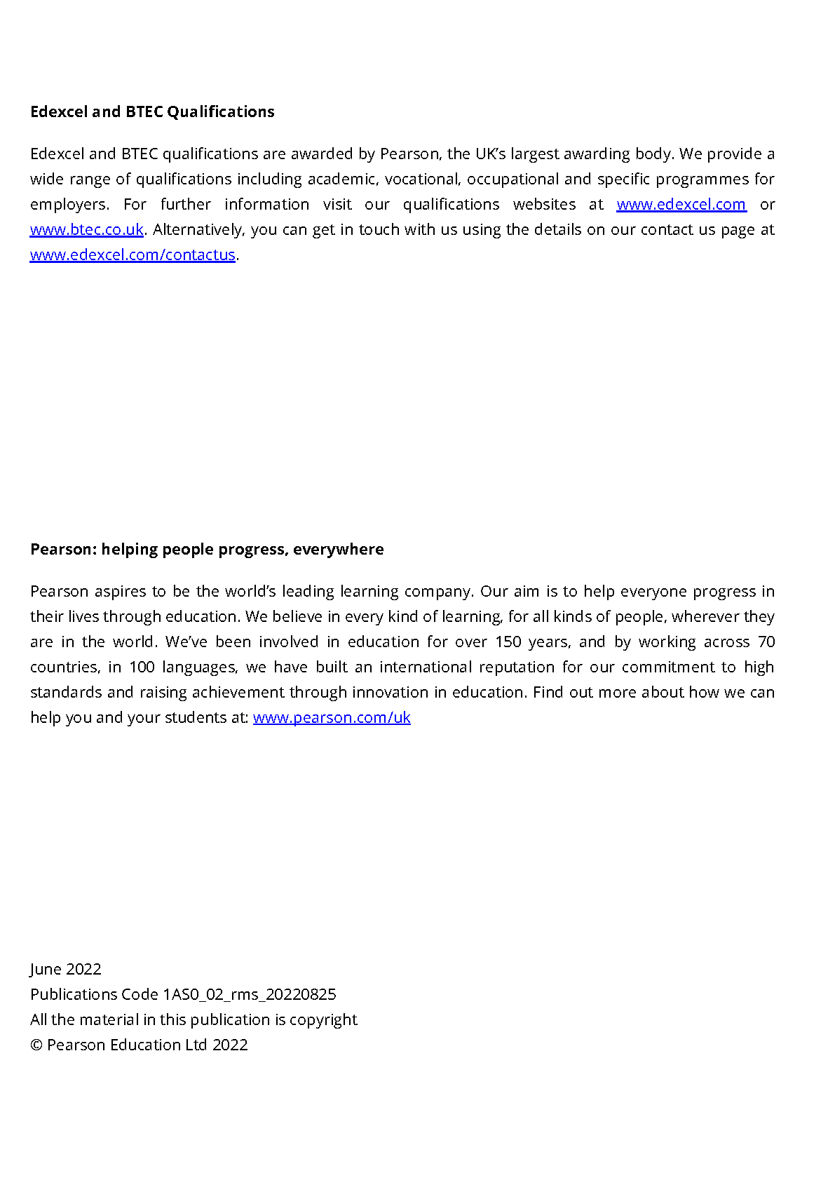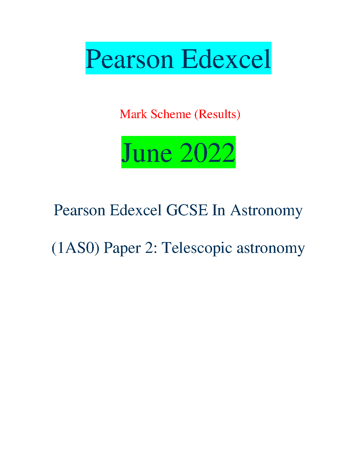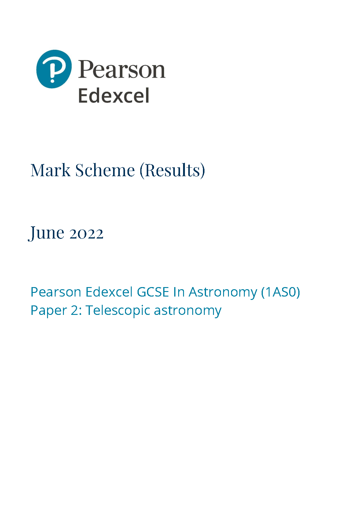 Pearson Edexcel GCSE In Astronomy (1AS0) June 2022 Paper 2: Telescopic astronomy Mark Scheme