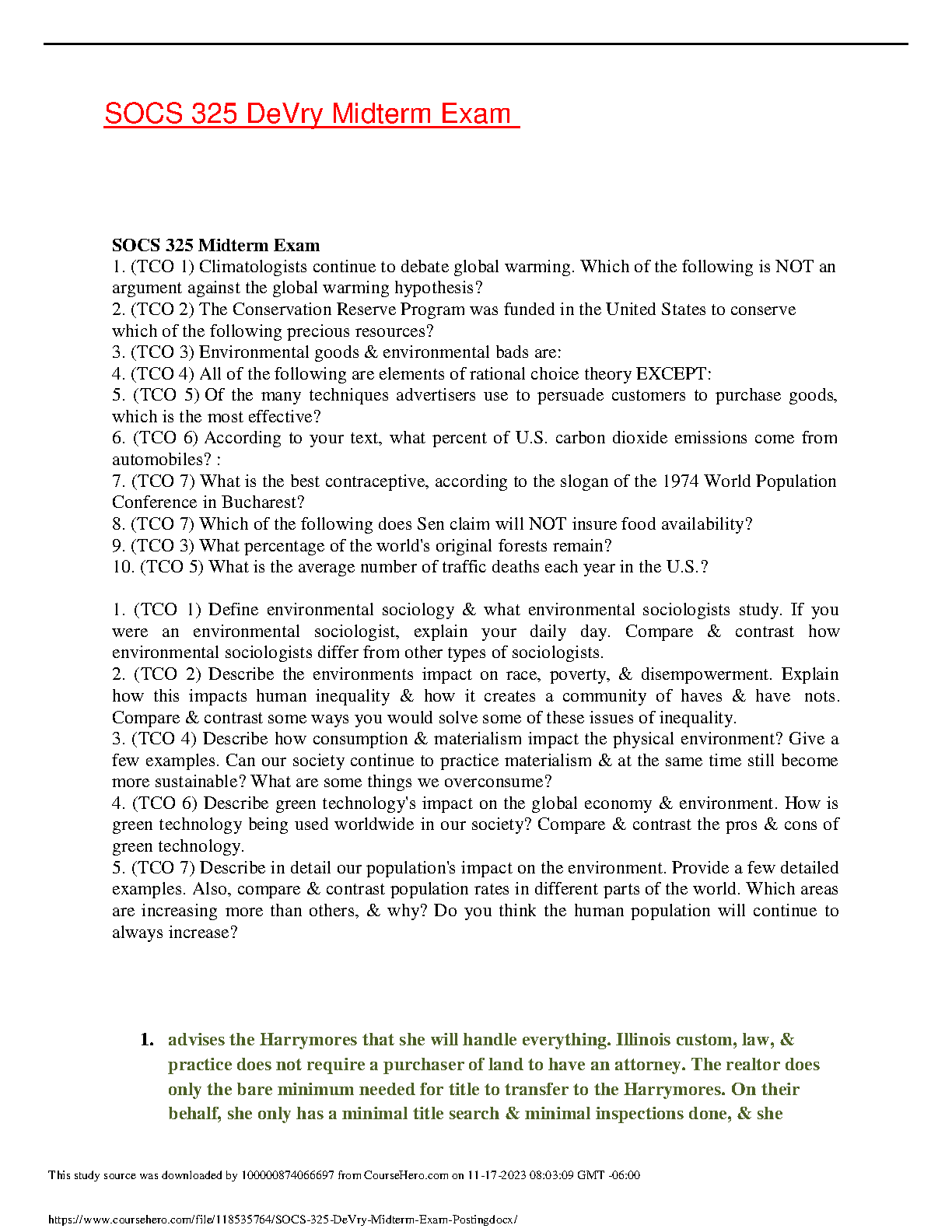 SOCS 325 De Vry Midterm Exam - Latest Edition 2024/2025 - Ace Your Exams with This Resource