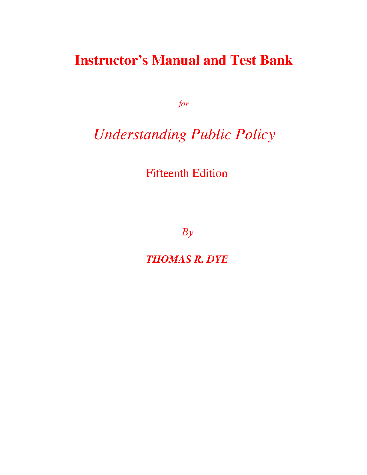 Understanding Public Policy 15th Edition Instructor's Manual and Test Bank by Thomas R. Dye
