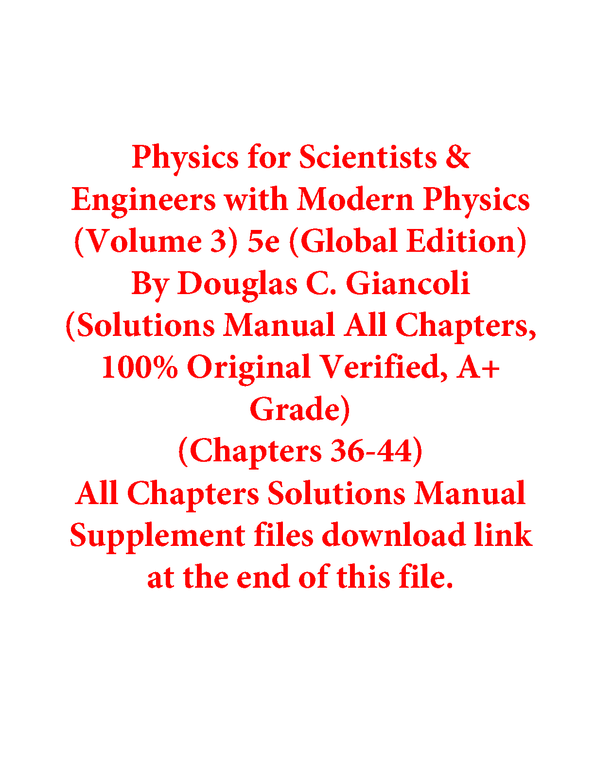 Physics for Scientists & Engineers with Modern Physics (Volume 3) 5e (Global Edition) by Douglas C. Giancoli - Solutions Manual - Chapters 36-44