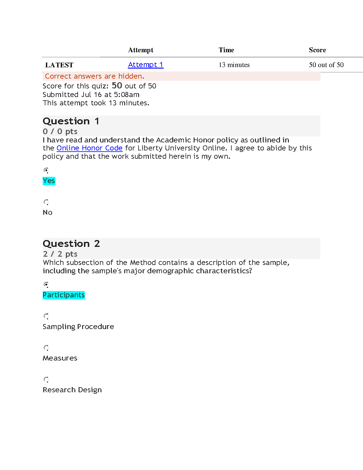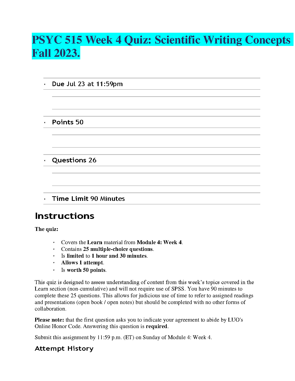 PSYC 515 Week 4 Quiz: Scientific Writing Concepts Fall 2023.