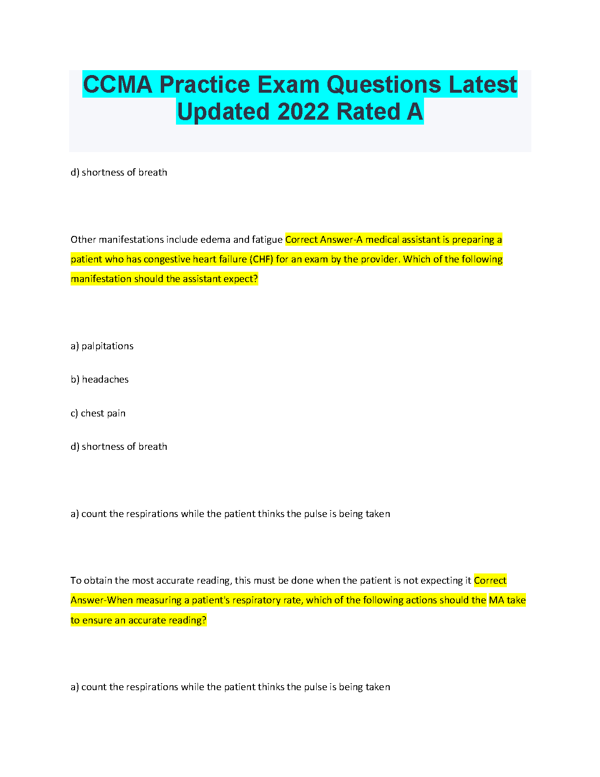 CCMA Practice Exam Questions Latest Edition 2022 Rated A