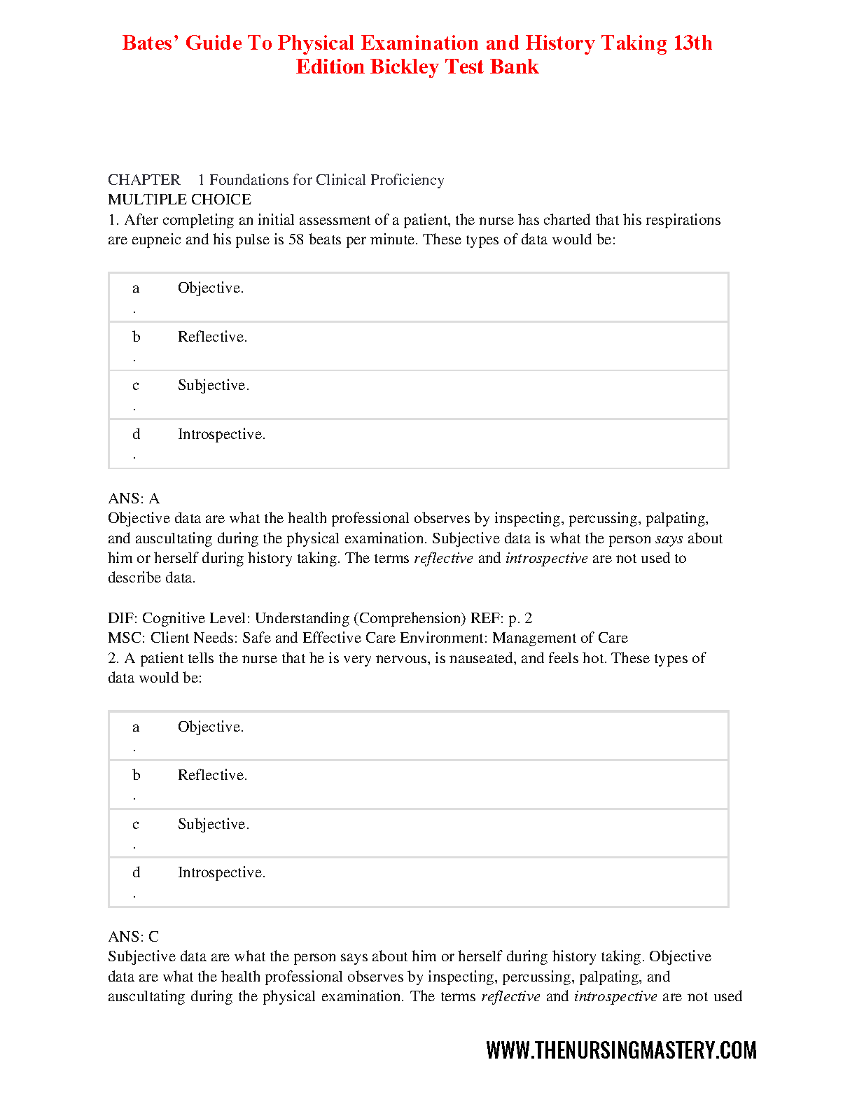 Bates' Guide To Physical Examination and History Taking 13th Edition Bickley, Szilagyi, and Hoekelman Test Bank