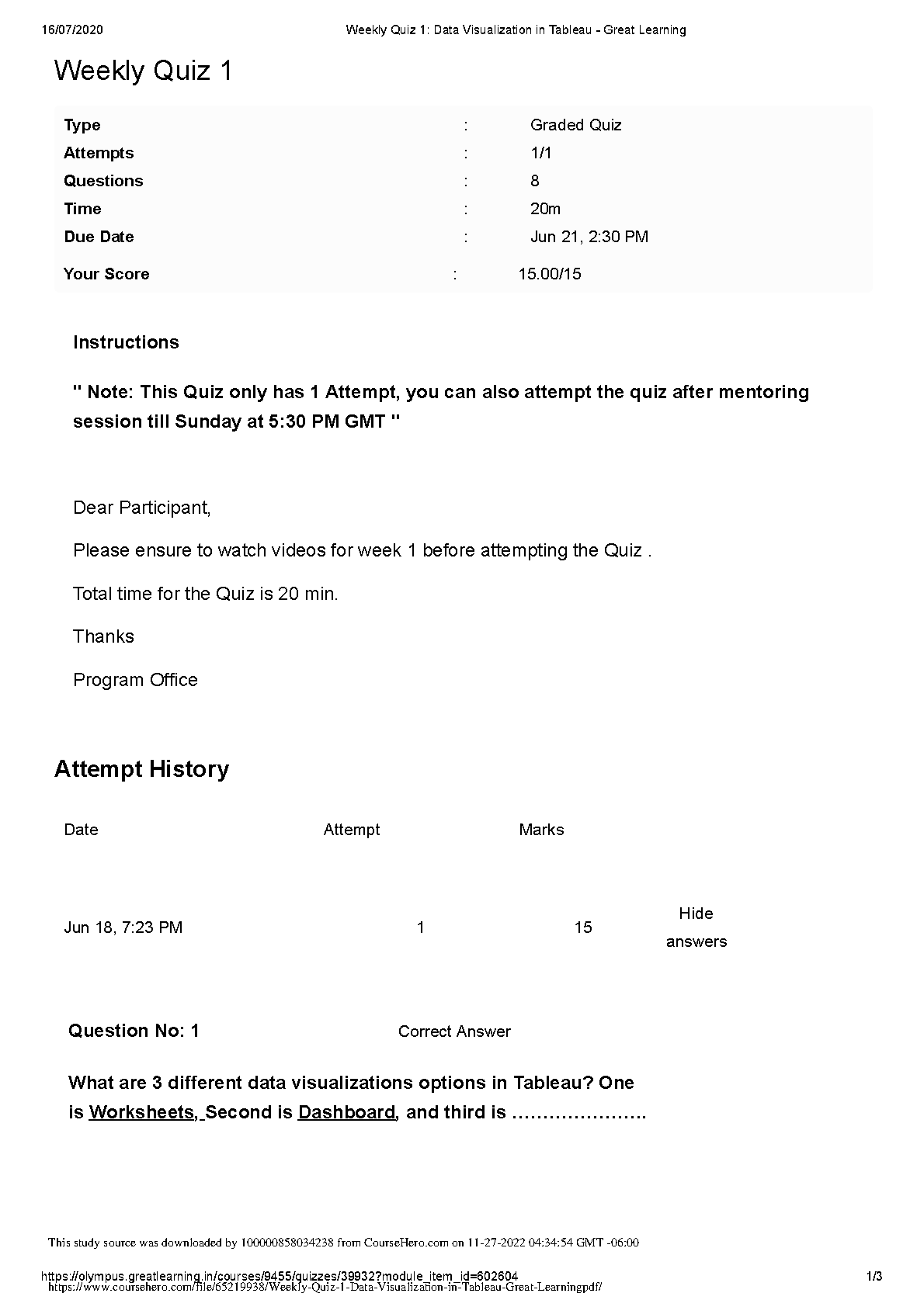 This resource is a comprehensive study guide for Tableau Data Visualization in Tableau - Great Learning Weekly Quiz 1. It covers all the essential concepts and provides a detailed breakdown of each topic. This will help you master the material and achieve exam success.
