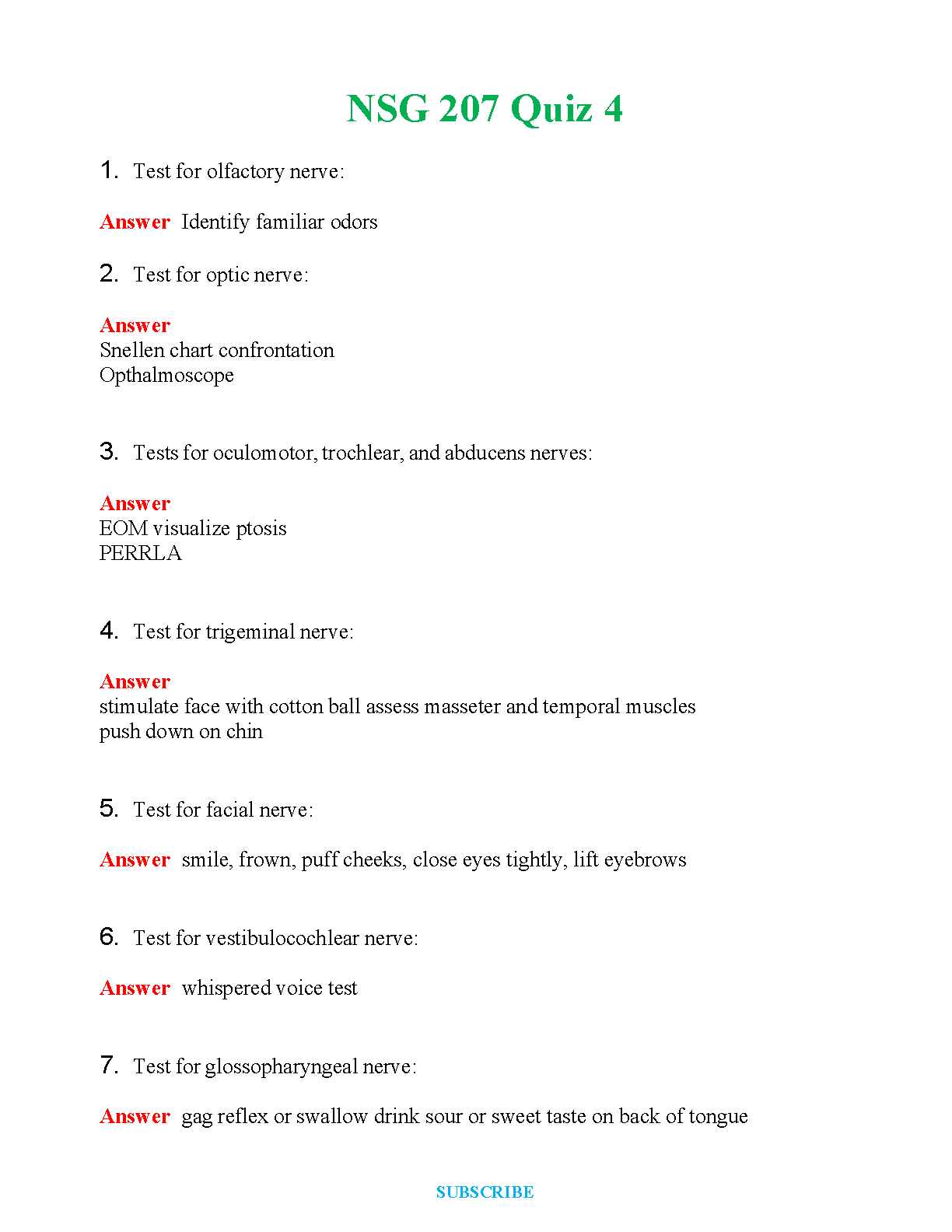 NSG 207 Quiz 4: Mastering Cranial Nerve Assessments for Nursing Success