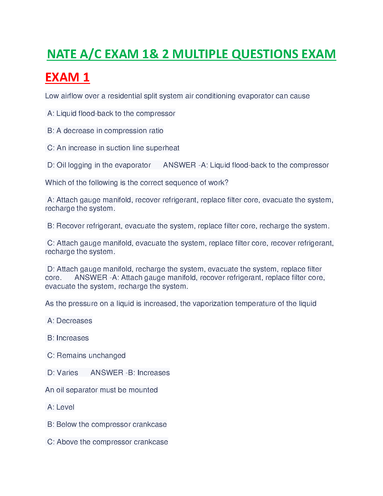 Nate A/C Exam 1 & 2 Multiple Questions Exam 1 - Pass your Exam on the First Attempt!