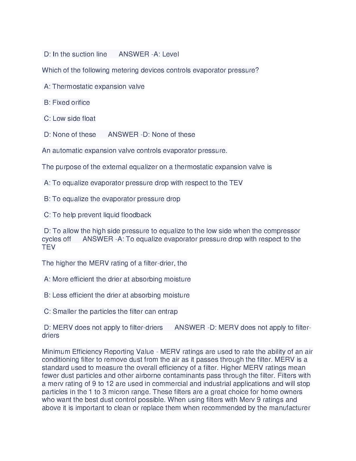 This practice exam covers the core concepts needed to succeed on the Nate A/C Exam 1 & 2. This study guide is packed with multiple-choice questions, and practice questions for exam prep. The exam questions cover everything from refrigerant types to system troubleshooting.