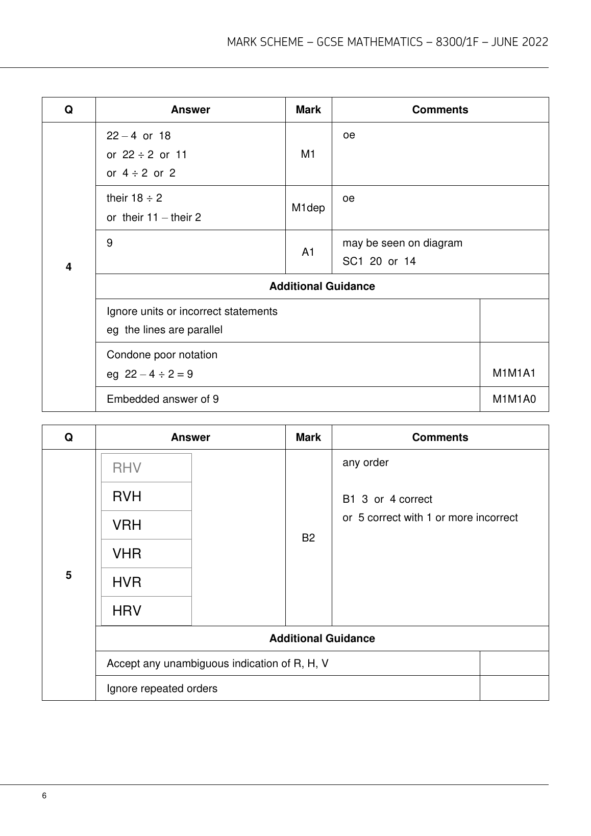 AQA GCSE MATHEMATICS PAPER 1 JUNE 2022 MARK SCHEME (8300/1F: Foundation Tier, Non-Calculator)