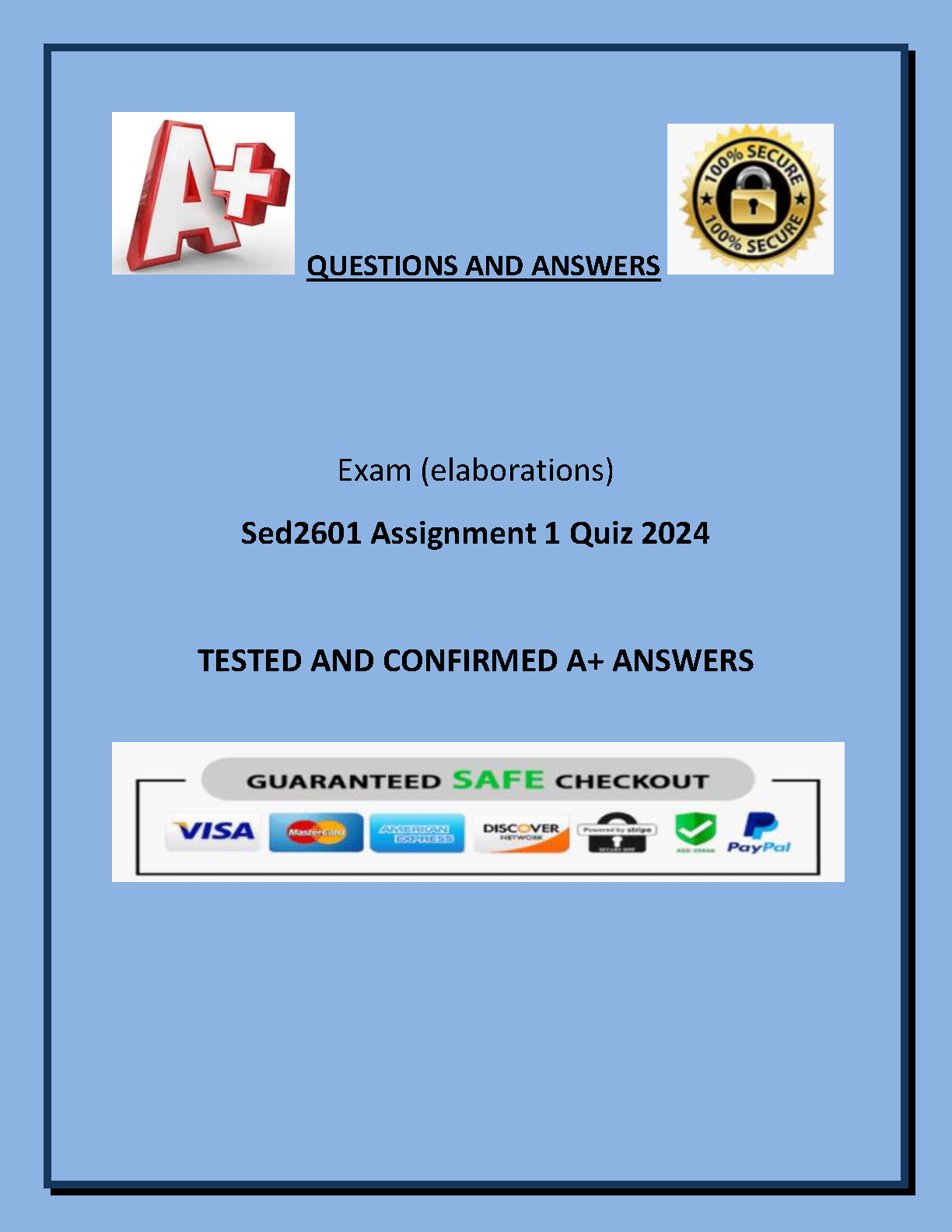 Get A+ on your Sed2601 Assignment 1 Quiz with our expertly crafted exam elaborations. Our solutions are tested and confirmed, providing you with the best possible study material.