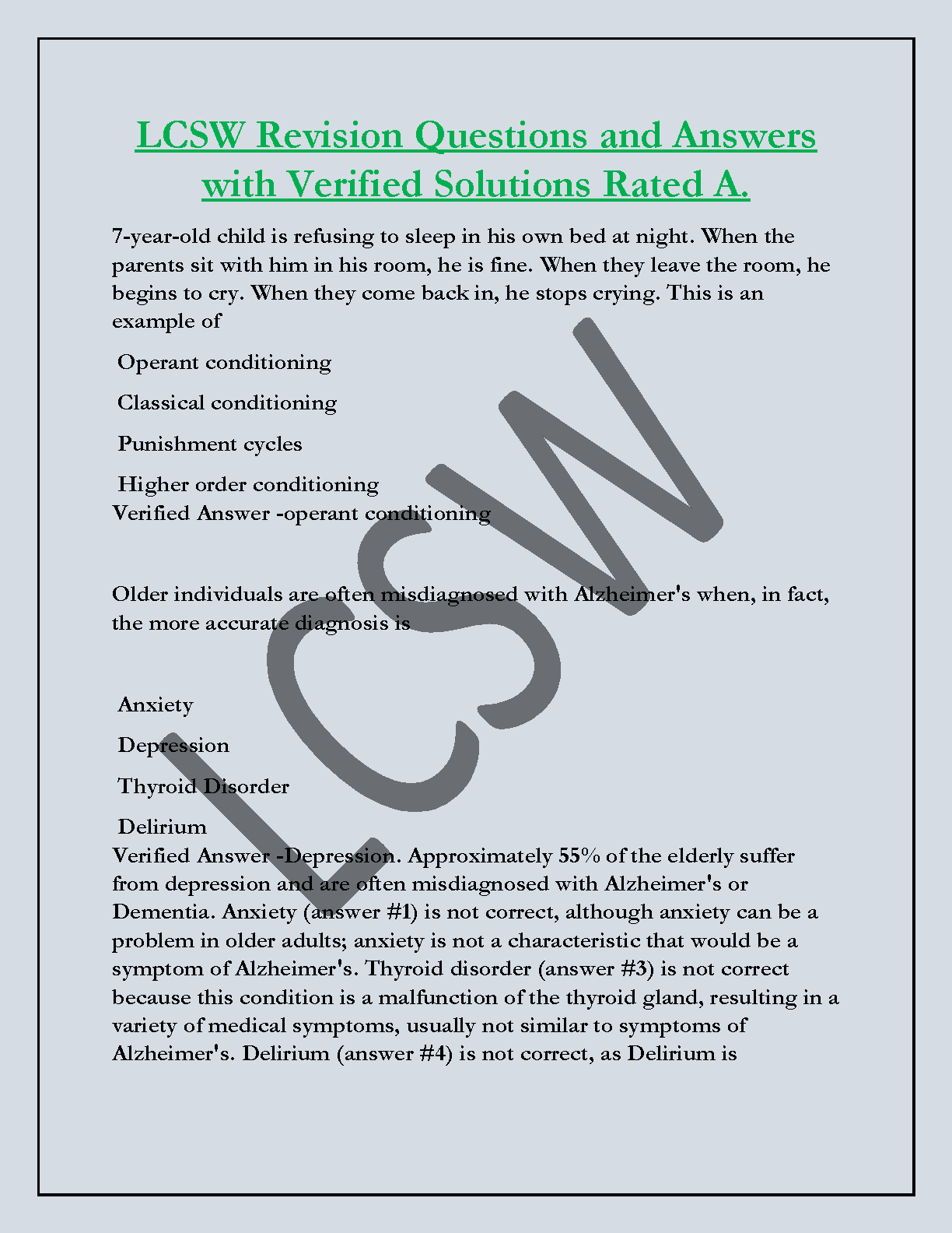 LCSW Revision Questions and Answers with Verified Solutions Rated A.