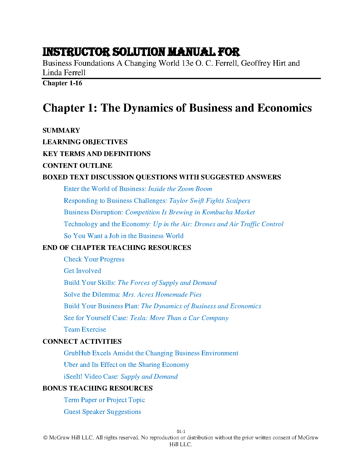 Business Foundations 13e: A Changing World by O.C. Ferrell, Geoffrey Hirt, and Linda Ferrell - Instructor Solution Manual