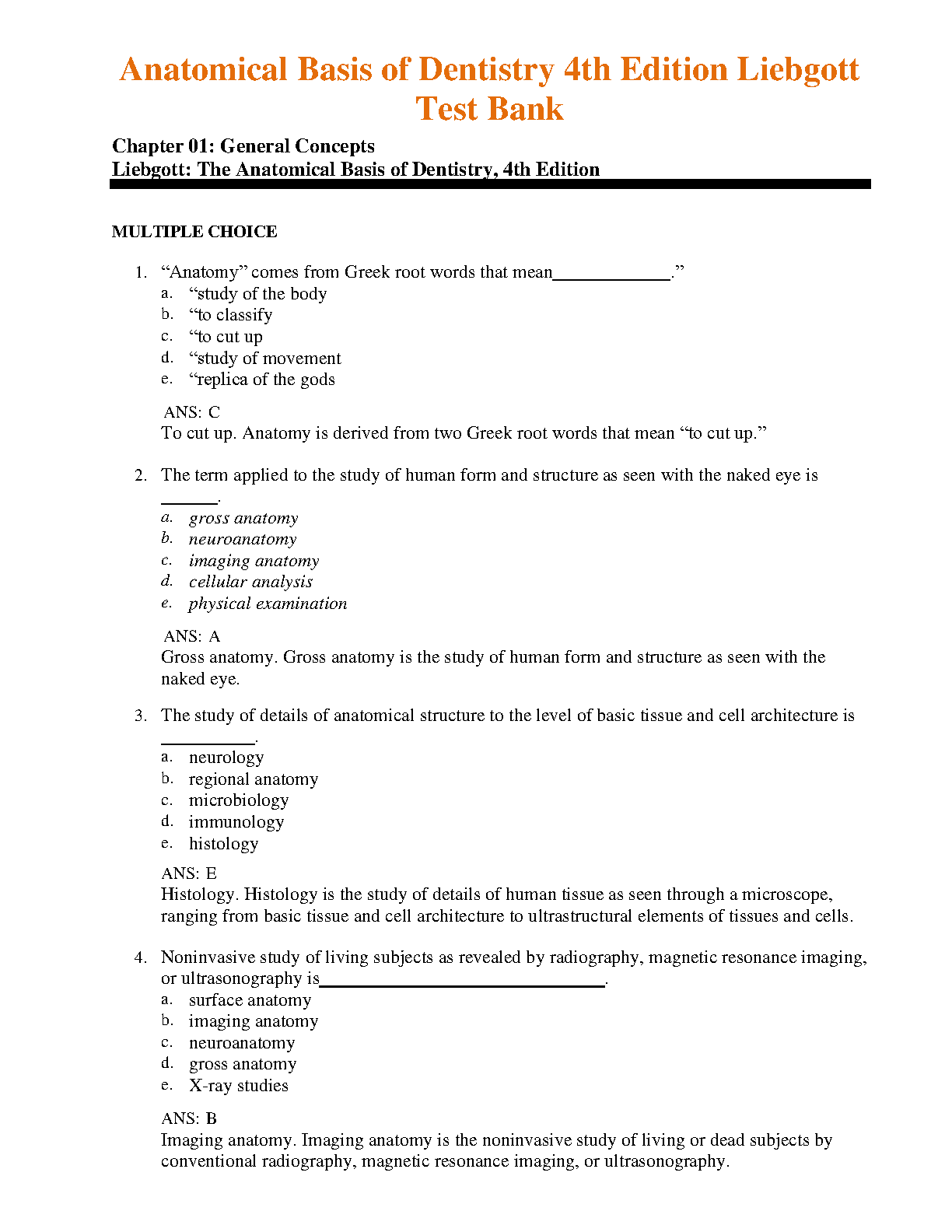 Unlock the secrets of dental anatomy with this comprehensive Test Bank for Anatomical Basis of Dentistry 4th Edition by Liebgott. Designed to help students excel in their dental studies, this resource offers a wealth of practice questions that cover the key concepts of the textbook. Practice makes perfect, and this Test Bank provides a powerful tool for solidifying your understanding of dental anatomy and preparing for exams with confidence.