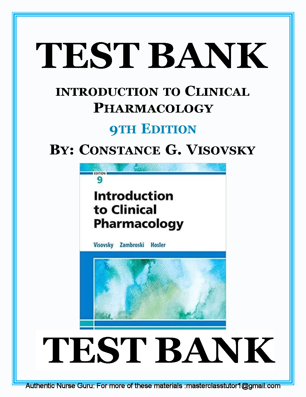 Introduction to Clinical Pharmacology 9th Edition Test Bank by Constance G. Visovsky, M. Zambronski, K. Hosler