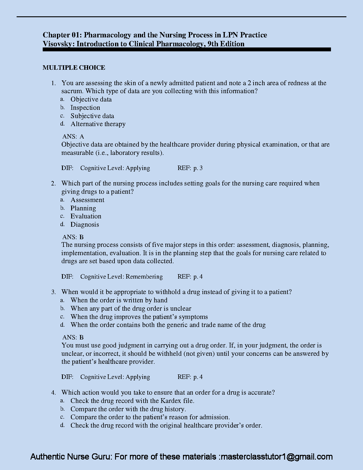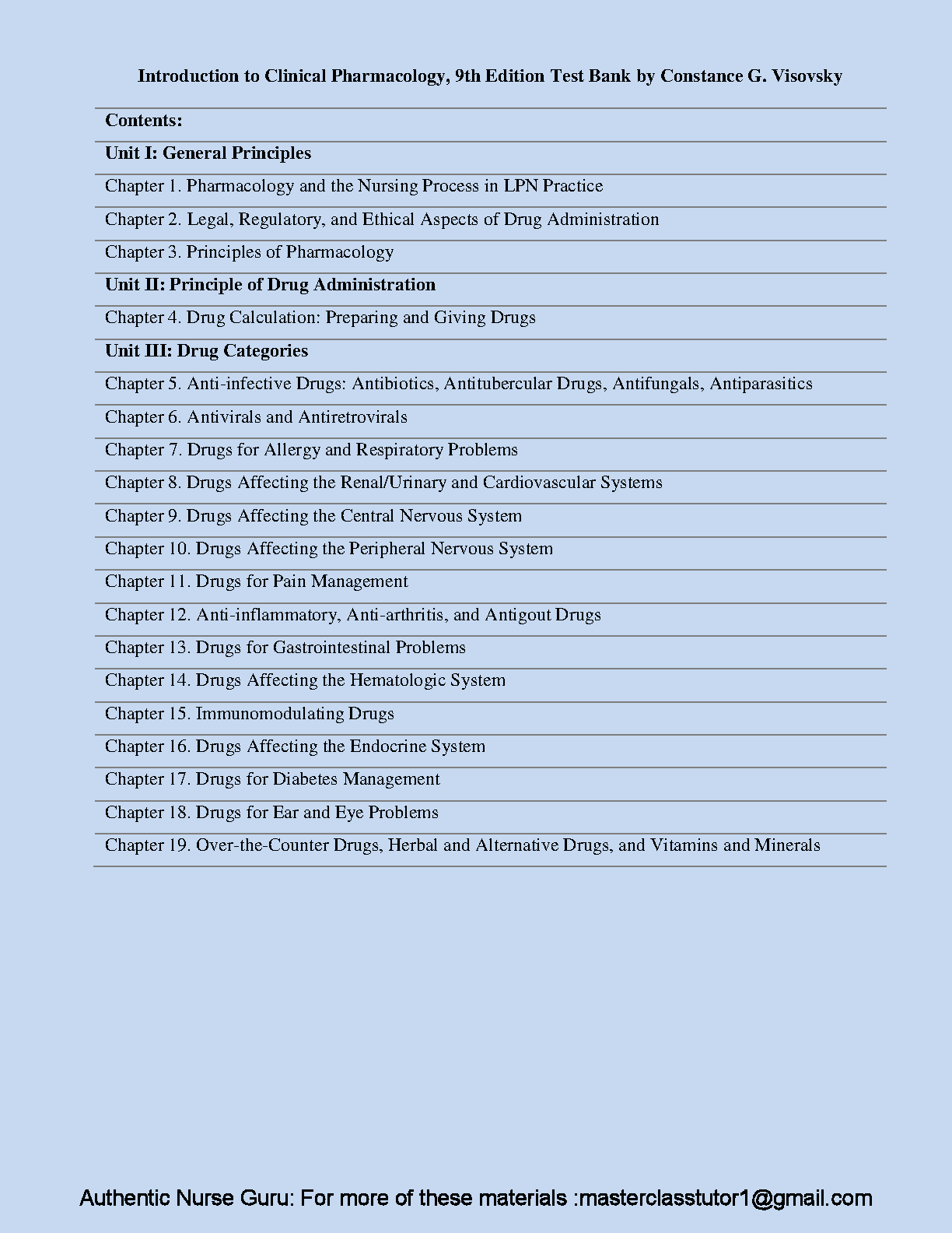 Ace your Pharmacology Exams on the First Attempt! This comprehensive test bank for Introduction to Clinical Pharmacology 9th Edition by Constance G. Visovsky, M. Zambronski, K. Hosler offers a wealth of practice questions, answer keys, and detailed explanations to reinforce your understanding of key concepts. This valuable resource is designed to help you master the subject and feel confident on your exams.