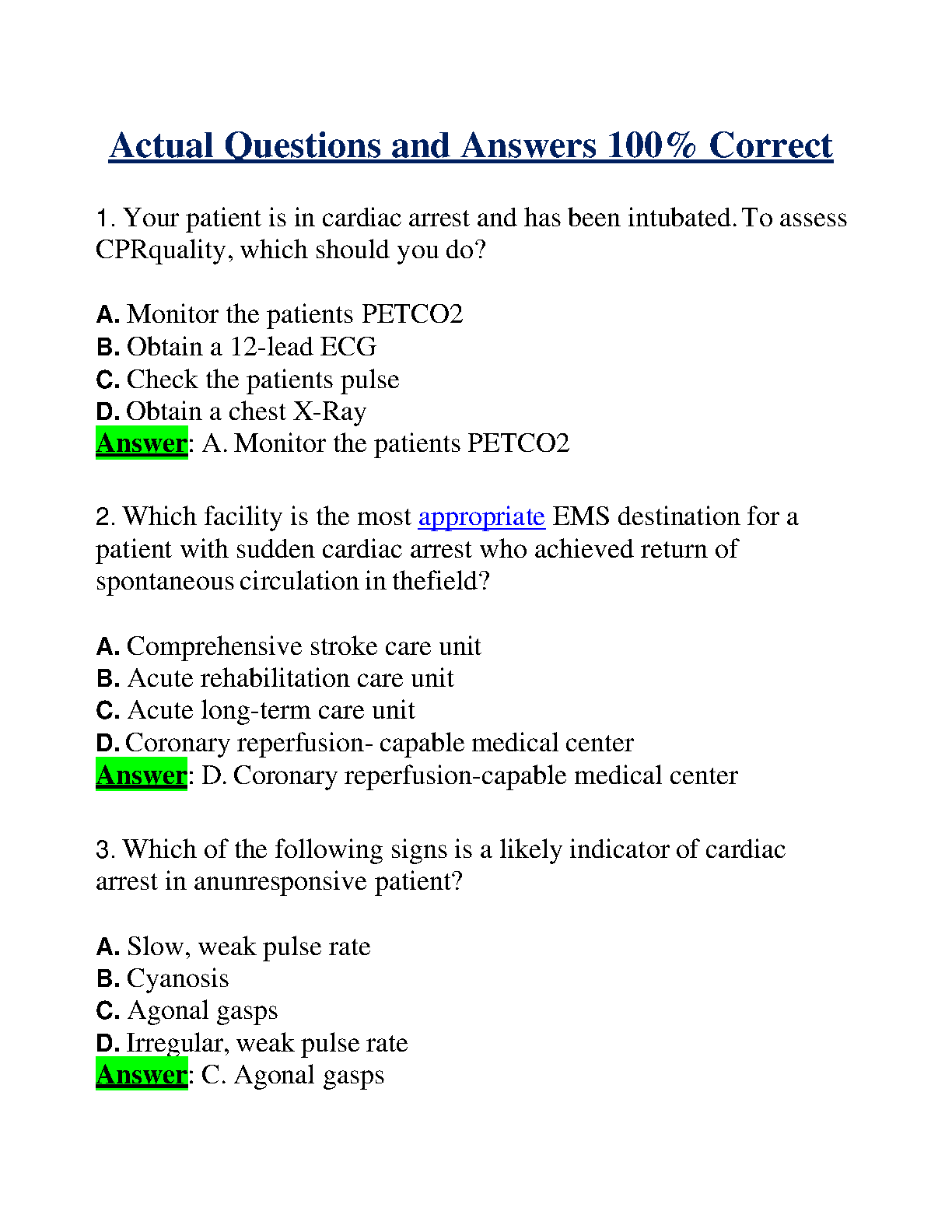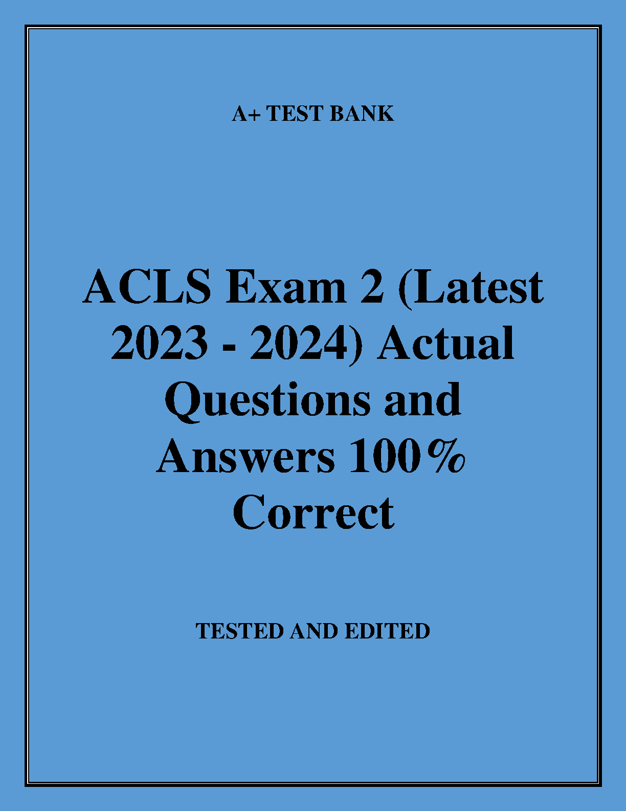 Pass your ACLS Exam 2 with confidence! This comprehensive test bank contains real 2023-2024 exam questions and answers, designed by the American Heart Association. Get access to the latest exam content, thoroughly tested and edited to ensure 100% accuracy. Ace your exam on the first try and avoid resits.