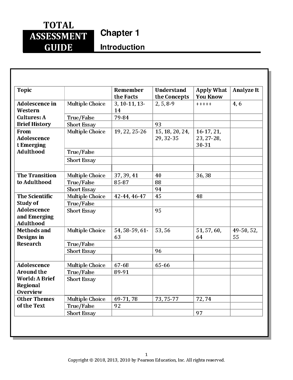 This comprehensive test bank for the 6th edition of Adolescence and Emerging Adulthood: A Cultural Approach by Jeffrey Jensen Arnett is designed to help instructors create engaging and effective assessments. It includes a variety of question types, such as multiple choice, true/false, and essay questions, covering all key concepts and theories presented in the textbook.