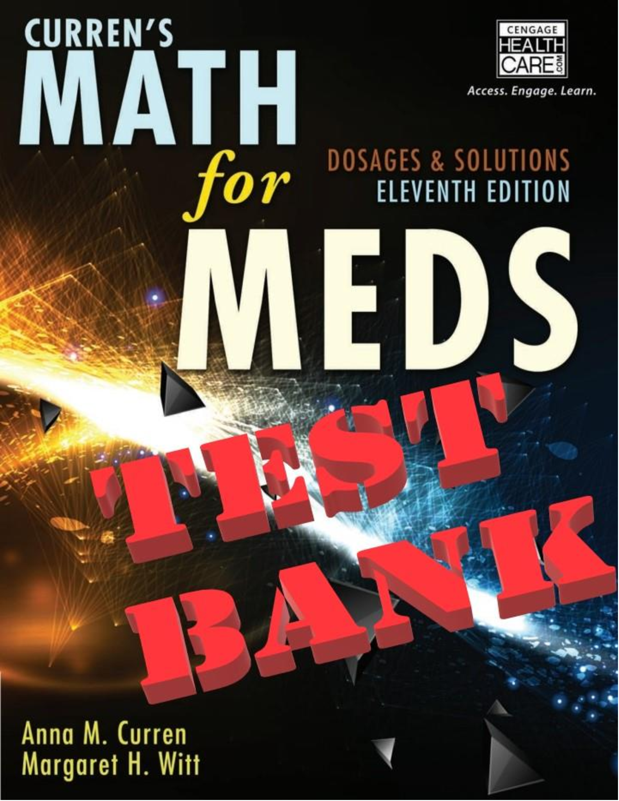 Curren's Math for Meds: Dosages & Solutions, 11th Edition by Anna M. Curren & Margaret H. Witt - Test Bank
