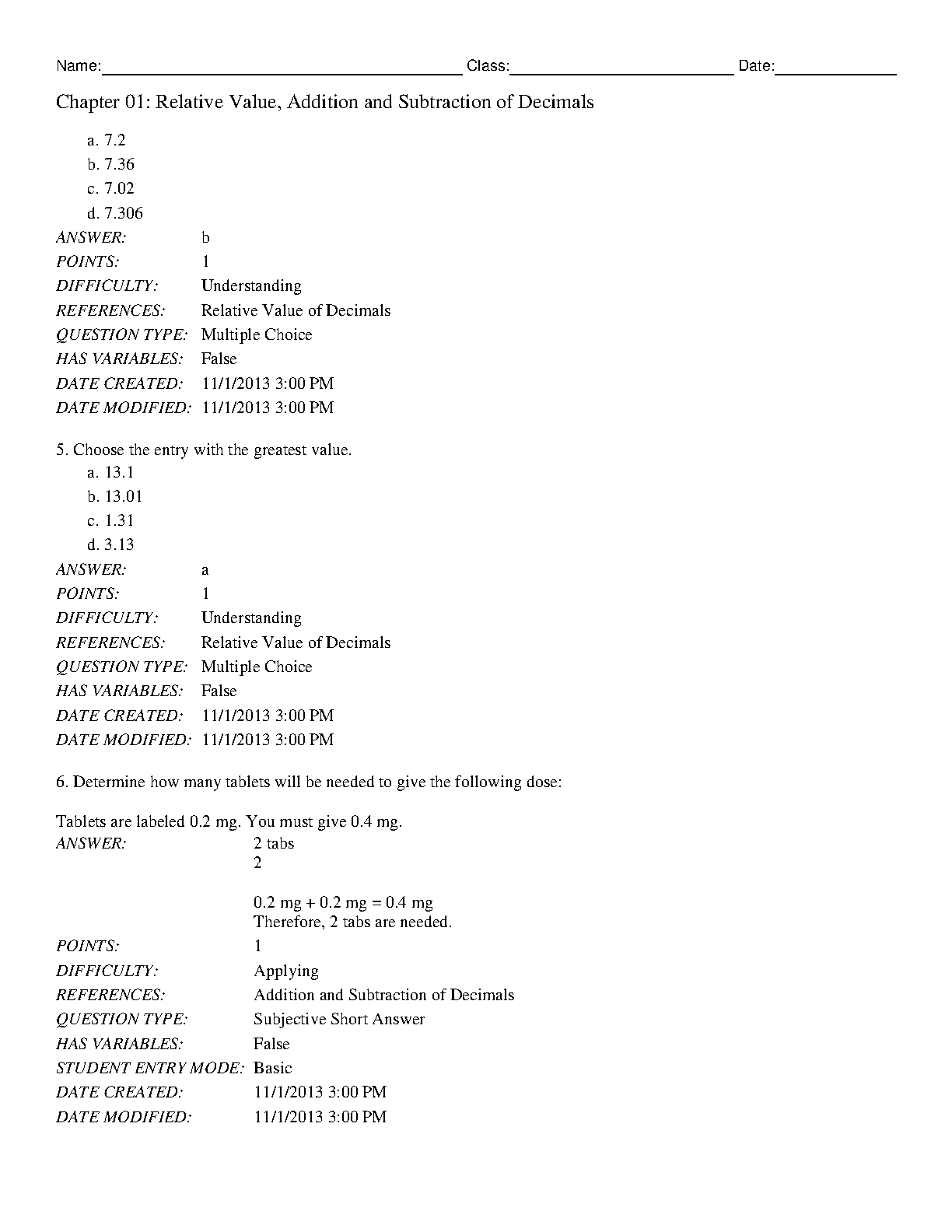 This comprehensive Test Bank for the 11th Edition of Curren's Math for Meds: Dosages & Solutions, authored by Anna M. Curren and Margaret H. Witt, provides instructors with a robust set of assessment tools. This resource includes a variety of question types, from multiple-choice and true/false to application and critical thinking problems, to help gauge student comprehension and mastery of medication dosage calculations.