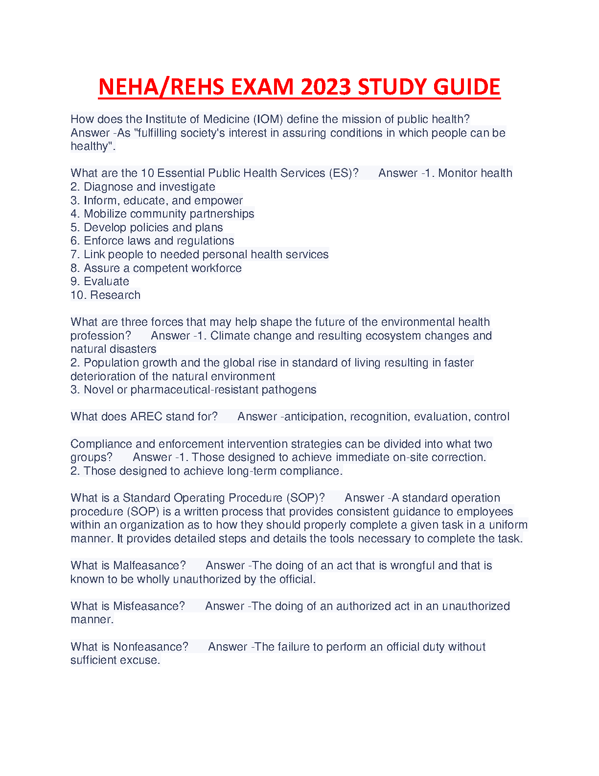 Ace your NEHA/REHS Exam with this comprehensive study guide, designed to help you succeed on your first attempt. This resource covers essential topics, including public health services, environmental health forces, standard operating procedures (SOPs), and compliance strategies. Get prepared with detailed explanations, practice questions, and expert insights to confidently tackle your exam.