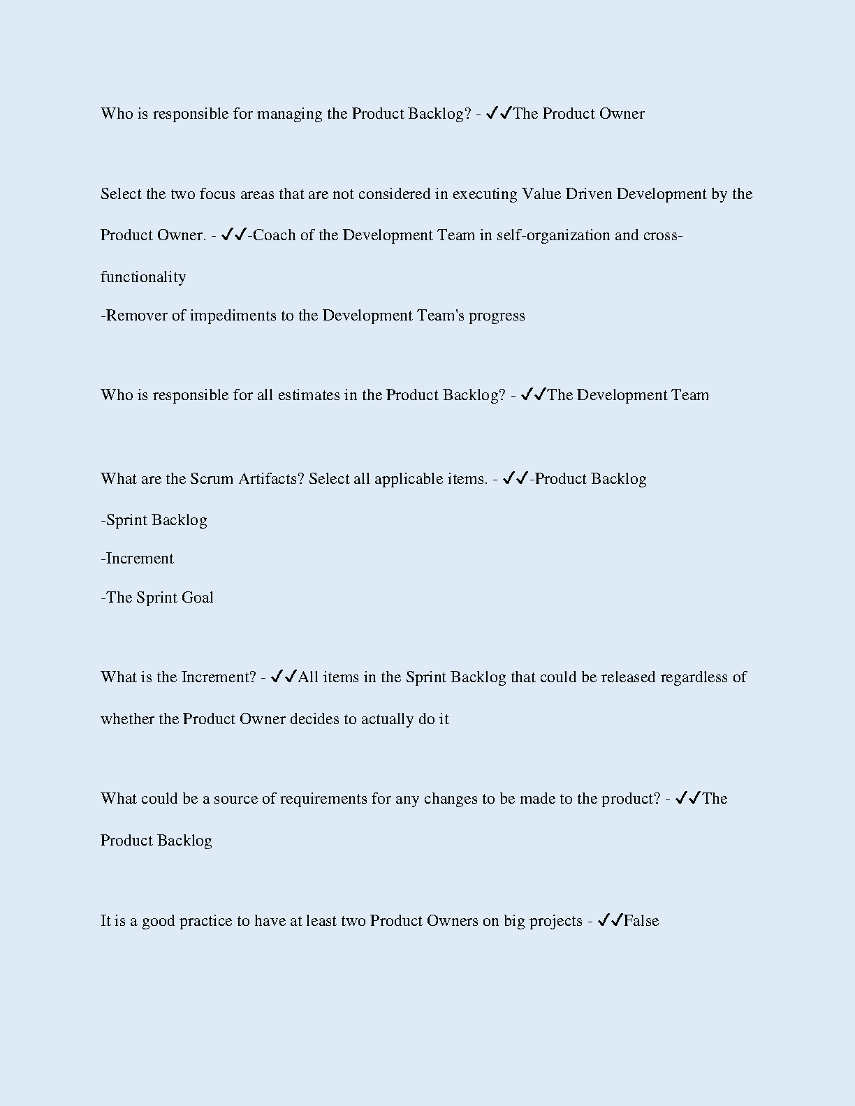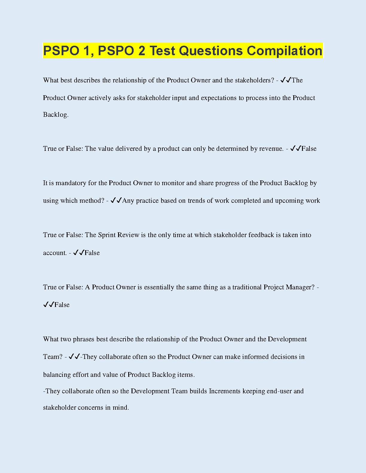 PSPO 1, PSPO 2 Test Questions Compilation - 2024/2025 Edition - Pass on Your First Attempt!