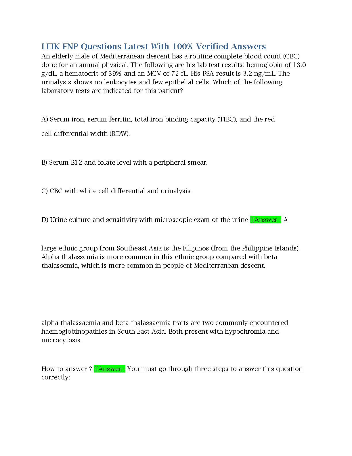 LEIK FNP Certification Review Questions and Answers - 2024/2025 Edition - Pass Your Exam on the First Attempt