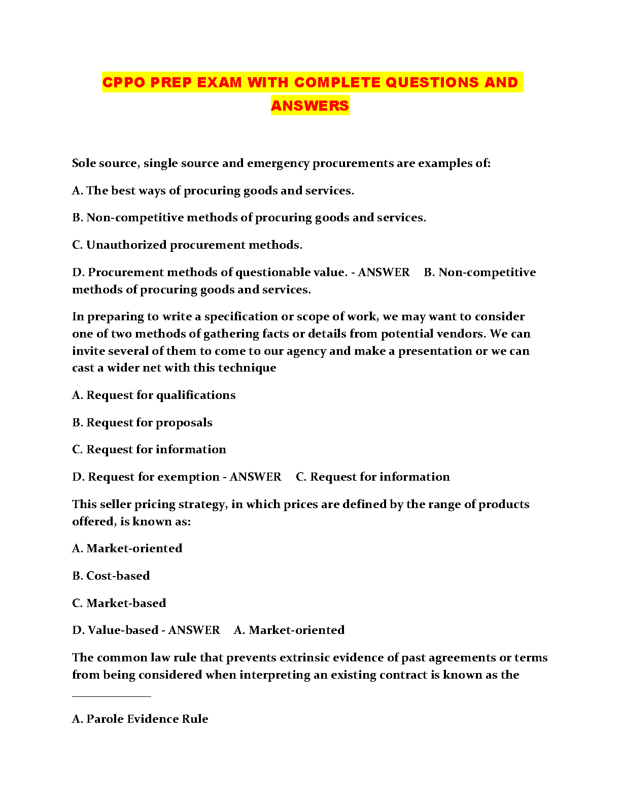 CPPO Prep Exam with Complete Questions and Answers: Latest Edition for Ace Your Exam on the First Attempt