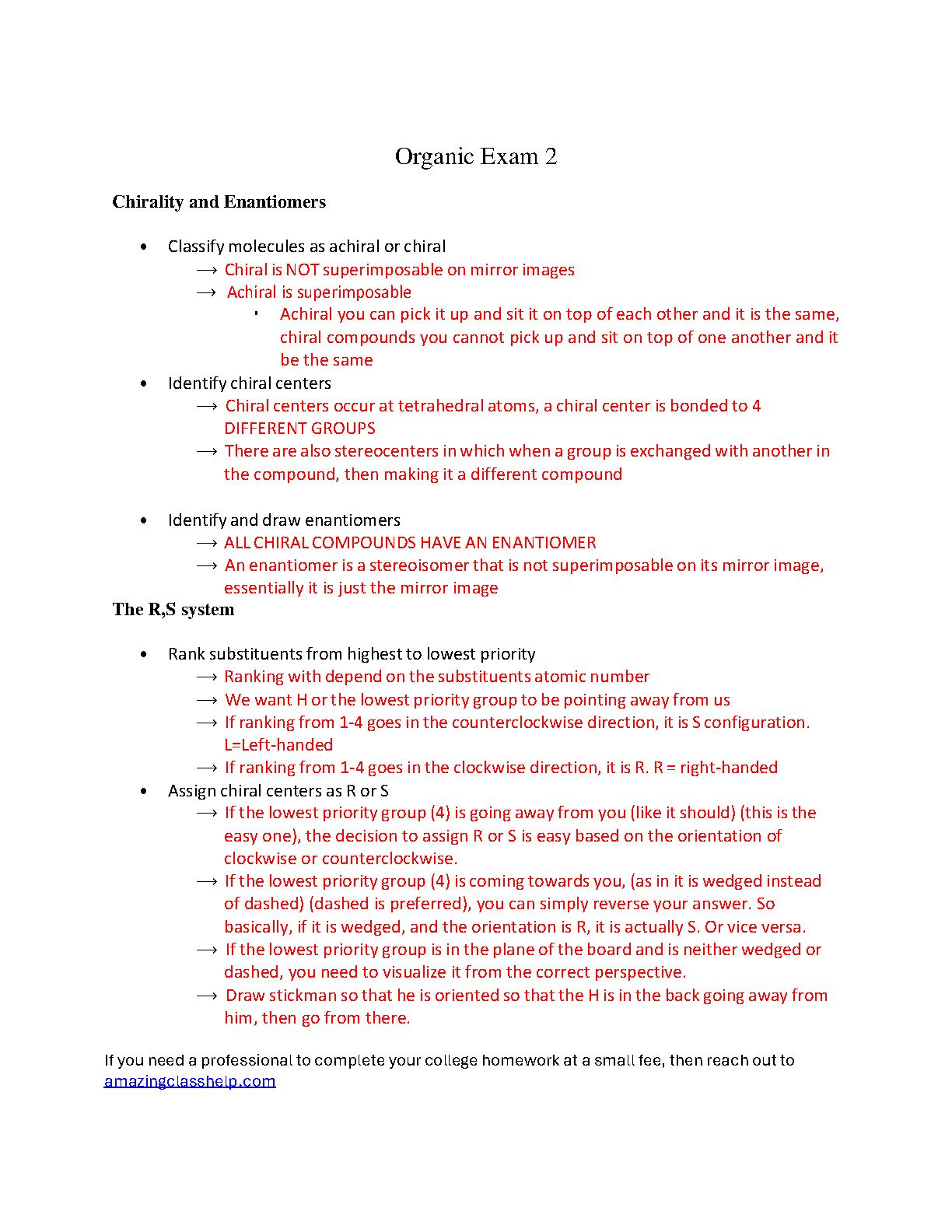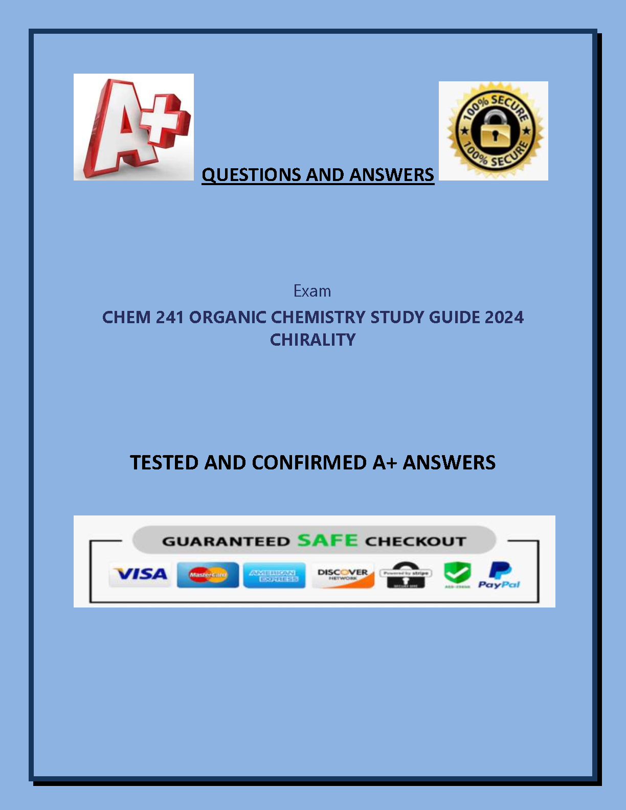 CHEM 241 Organic Chemistry Study Guide 2024 - Chirality - Ace Your Exam with Guaranteed A+ Answers