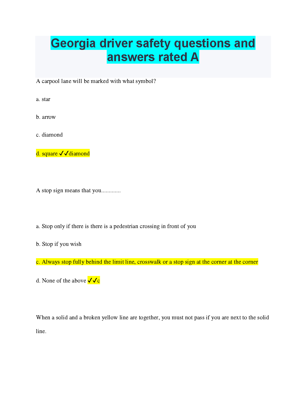 Georgia Driver Safety Questions and Answers Rated A - Ace Your Driver's Test on the First Try!