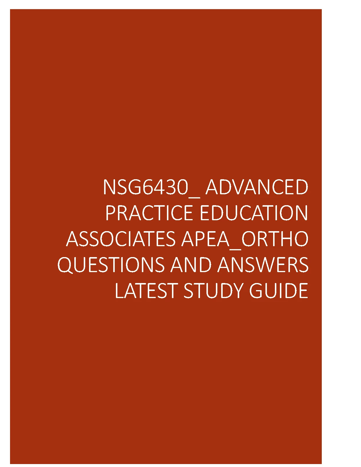 NSG6430_ ADVANCED PRACTICE EDUCATION ASSOCIATES APEA_ORTHO QUESTIONS AND ANSWERS LATEST STUDY GUIDE. DOWNLOAD on www.hackedexams.com INSTANTLY.