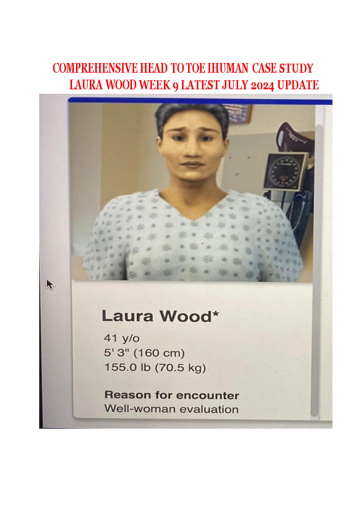 iHuman Case Study: Comprehensive Head to Toe Assessment - Laura Wood - Latest July 2024 Update