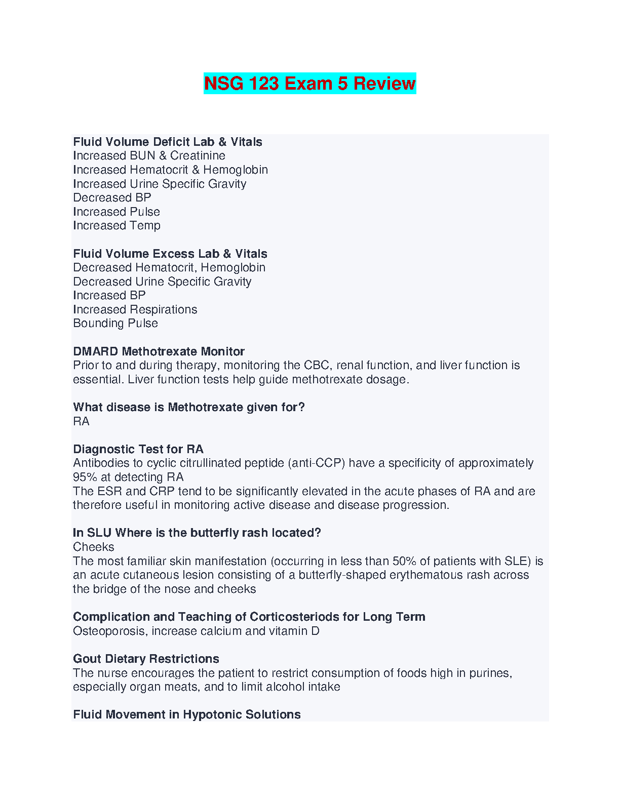 Get ready to ace your NSG 123 Exam 5 with our comprehensive study guide. This in-depth review covers key concepts, practice questions, and essential information to help you pass with confidence.