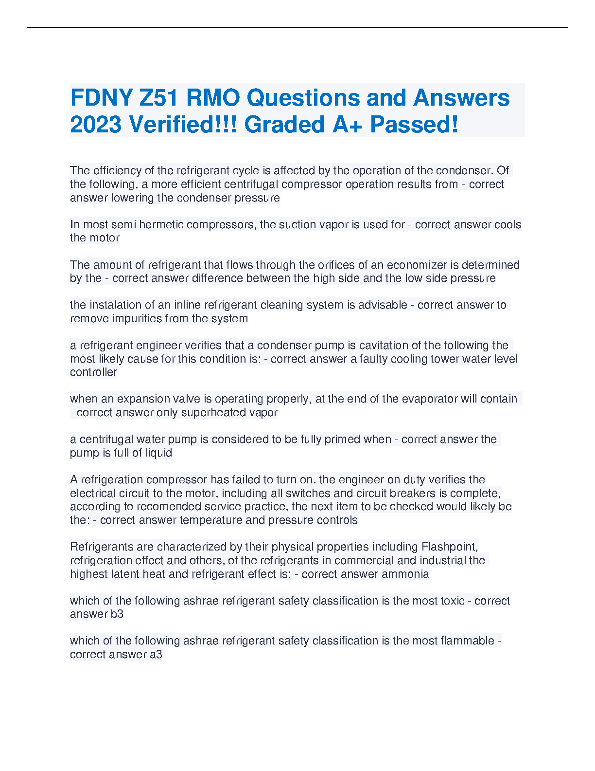 Ace your FDNY Z51 RMO exam with this comprehensive study guide packed with 2023 verified questions and answers. Developed by expert instructors, this resource covers all the essential topics you need to know, ensuring you feel confident and prepared. Get ready to pass with flying colors and avoid resits.