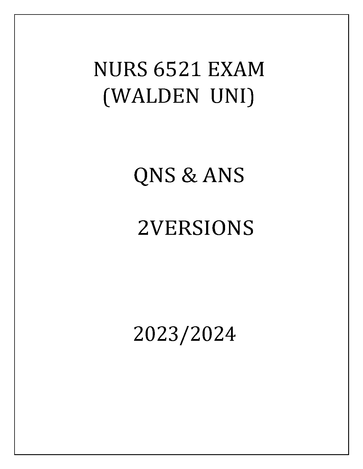 NURS 6521 Exam Questions & Answers 2023/2024 - 2 Versions by Walden University