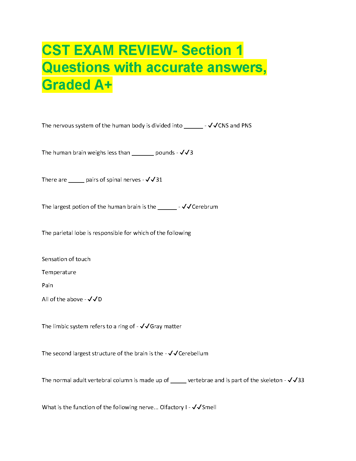 CST Exam Review- Section 1: Questions with Accurate Answers, Graded A+