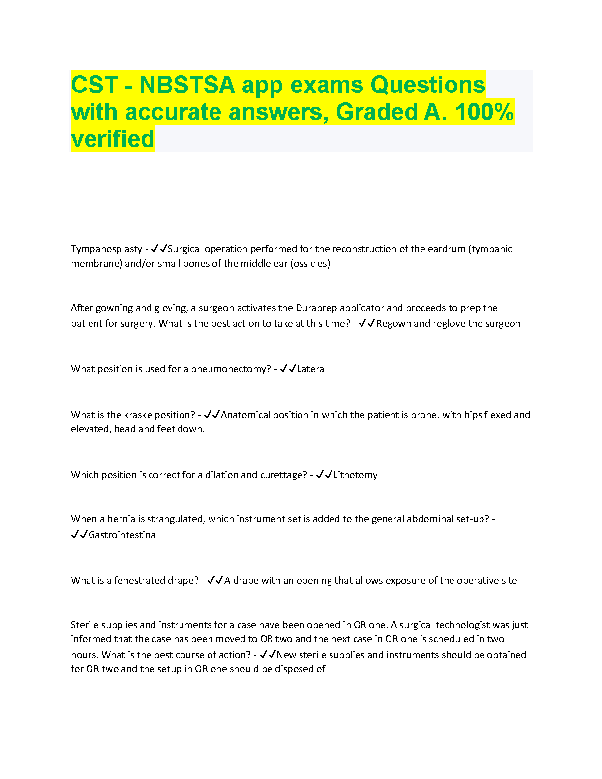 CST - NBSTSA App Exams Questions with Accurate Answers, Graded A, 100% Verified - 2024/2025 Edition