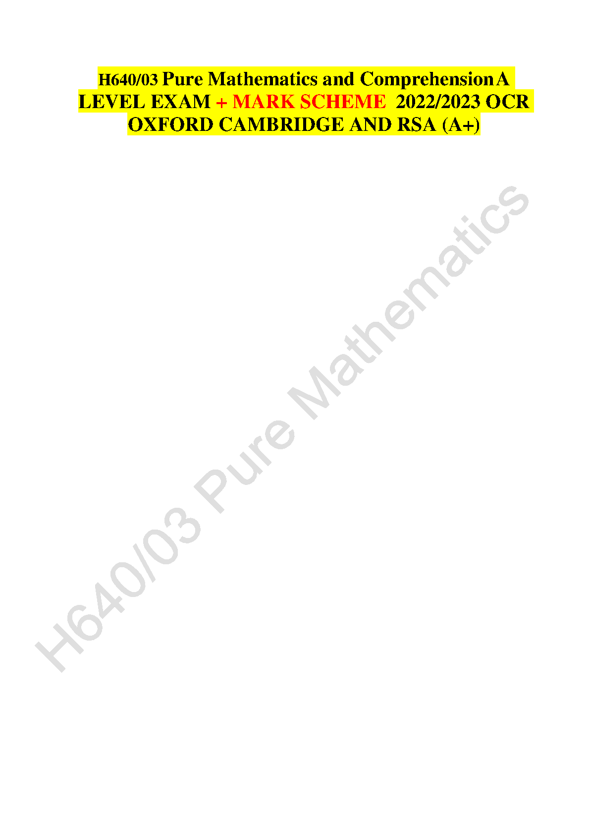 H640/03 Pure Mathematics and Comprehension A Level Exam + Mark Scheme 2022/2023 OCR by Oxford Cambridge and RSA (A+)