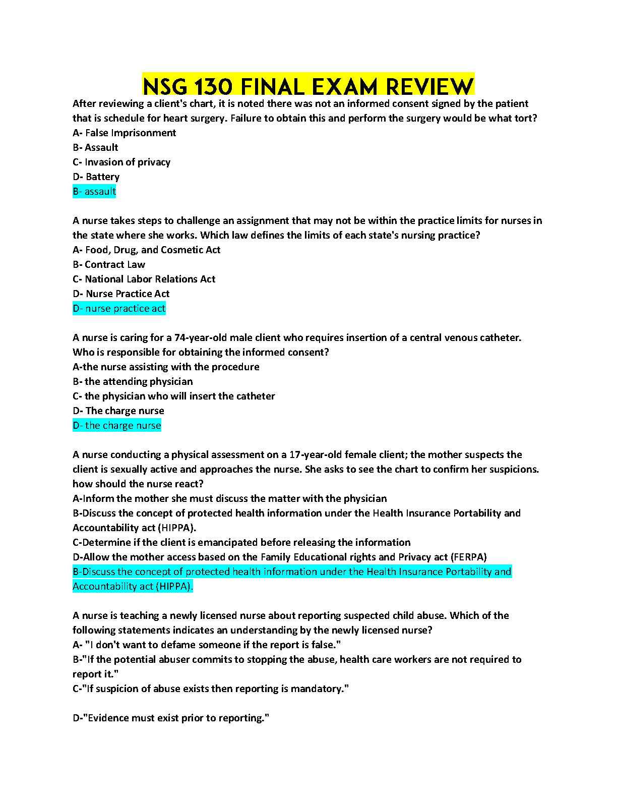 This comprehensive study guide covers essential concepts and practice questions for NSG 130.