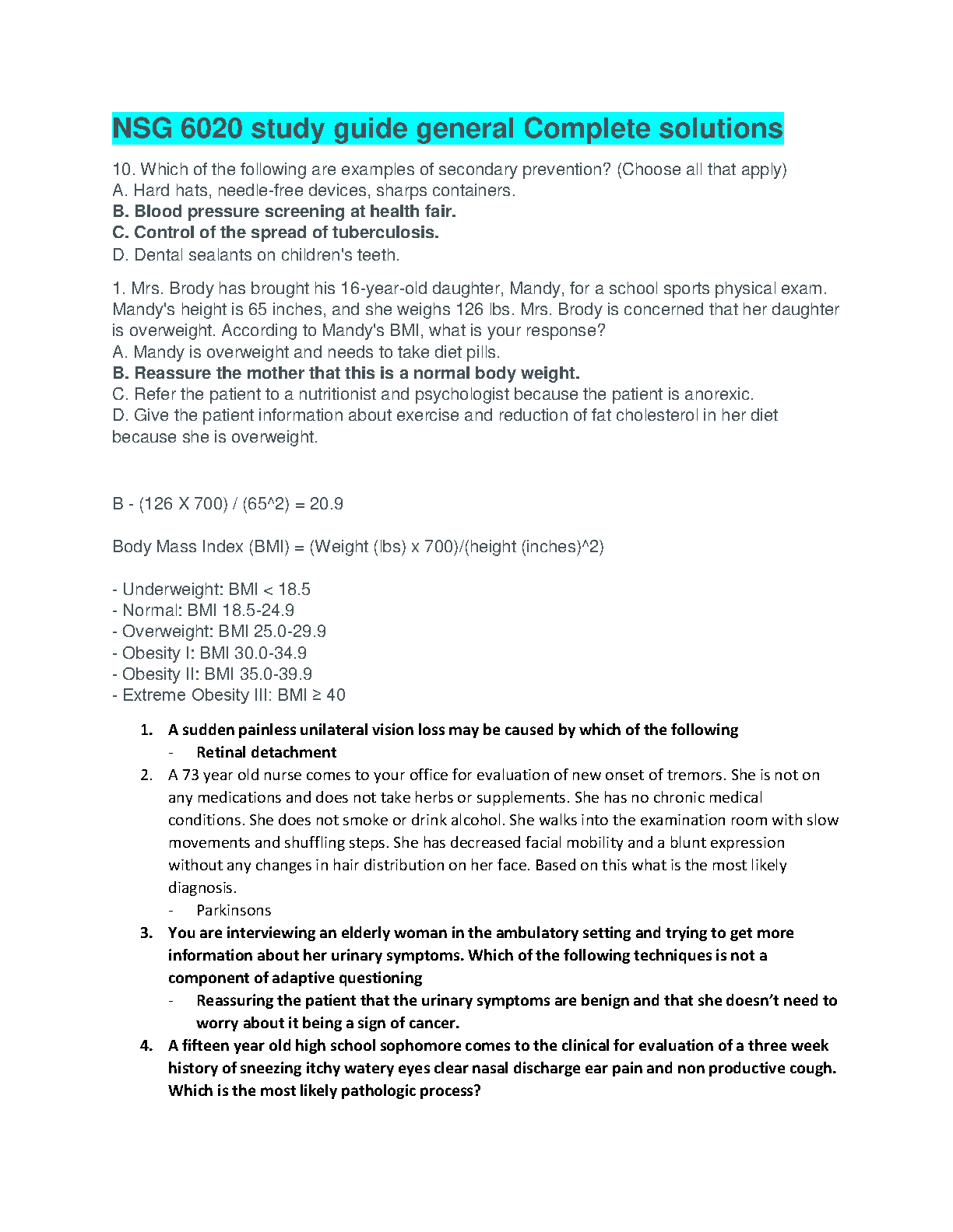 NSG 6020 study guide general Complete solutions ALL SECTIONS COVERED 2023/2024. DOWNLOAD on www.hackedexams.com INSTANTLY.