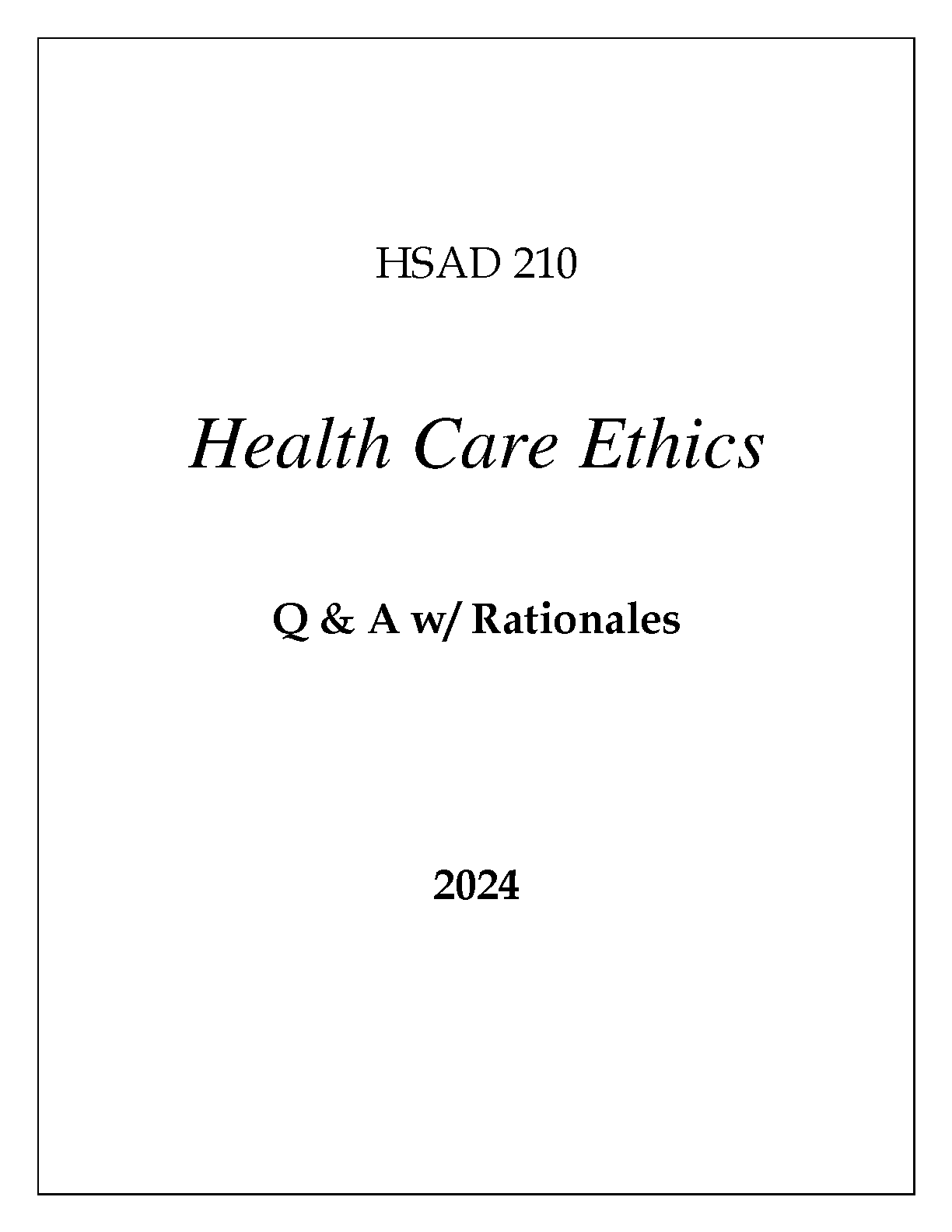 HSAD 210 Health Care Ethics Q&A w/ Rationales 2024 Edition