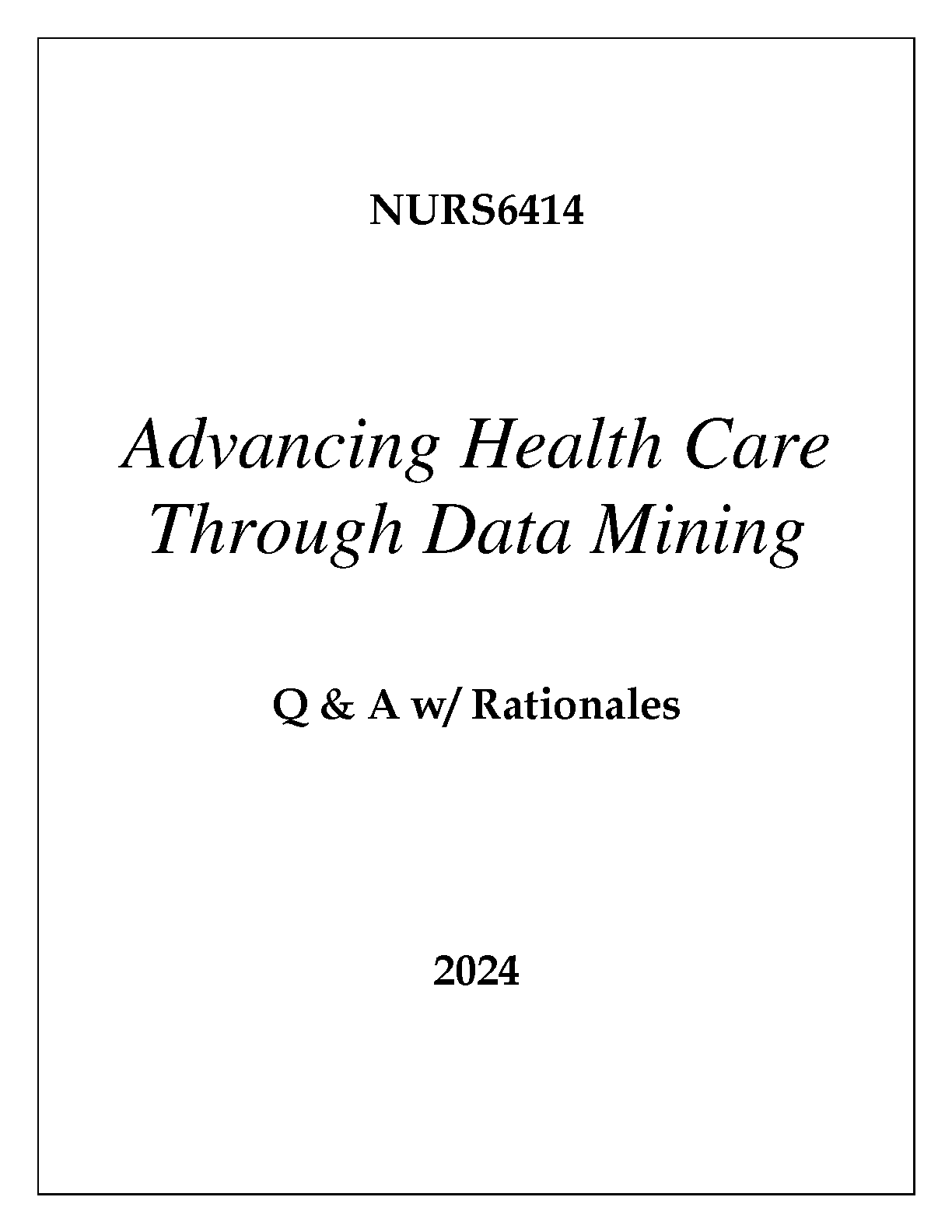 Ace your NURS6414 exams with this comprehensive 2024 edition Q&A study guide, featuring detailed rationales to solidify your understanding of Advancing Health Care Through Data Mining.