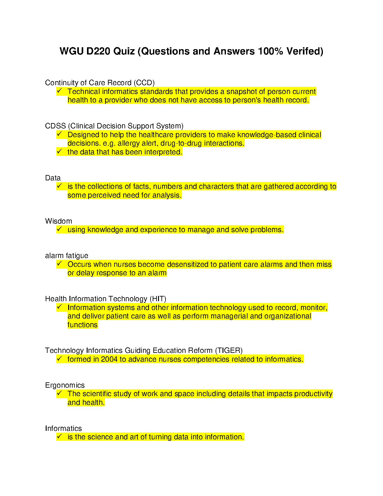 This comprehensive resource provides a comprehensive compilation of WGU D220 quiz questions and answers, meticulously verified for accuracy. It is designed to help students prepare for and confidently pass their exam on the first attempt, eliminating the stress of retakes. Gain a solid understanding of key concepts and ensure exam success with this valuable study material.