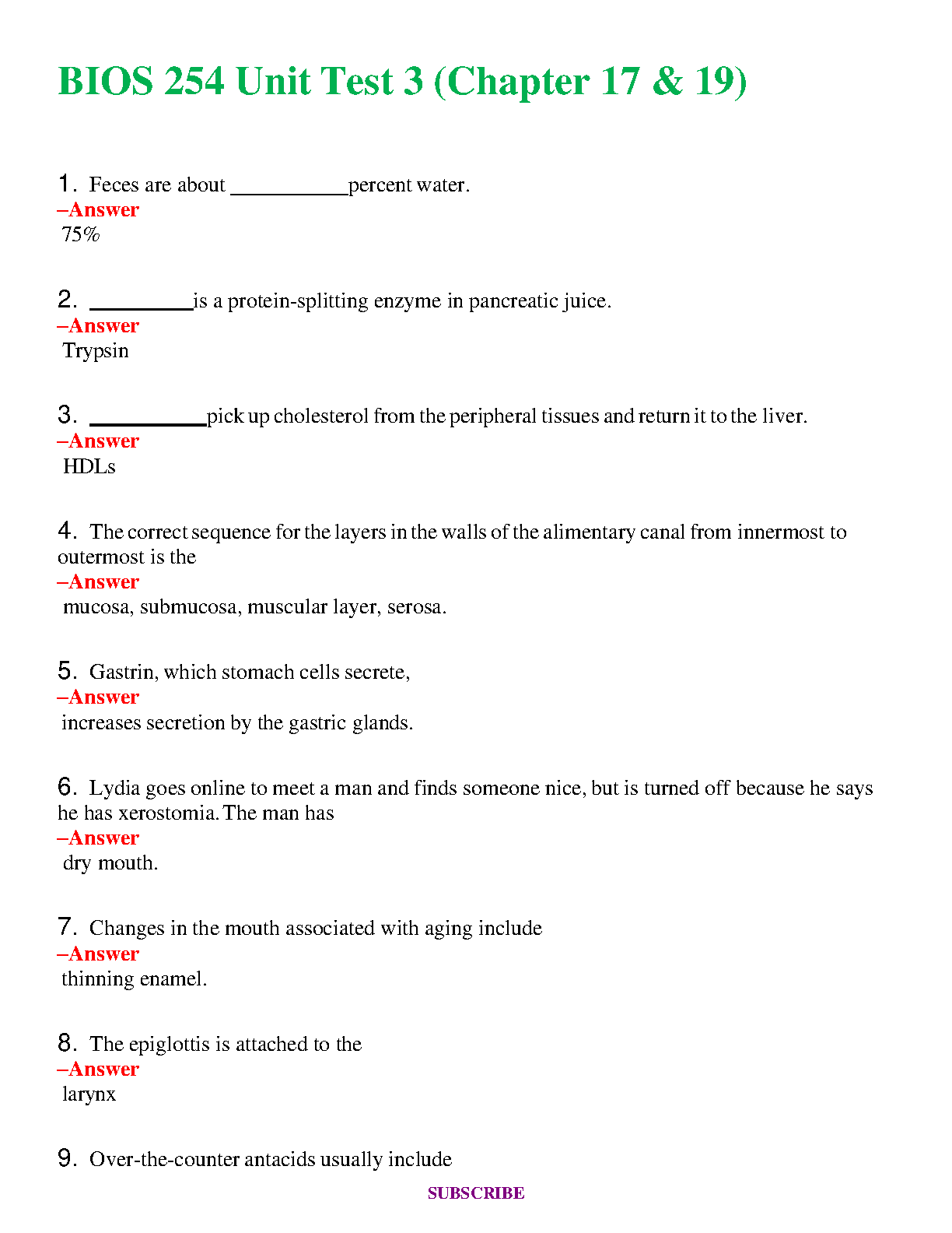 Prepare for your BIOS 254 Unit 3 exam with confidence using this comprehensive study guide covering Chapters 17 & 19. This resource includes practice questions and detailed explanations to help you master key concepts and ensure exam success on your first attempt.