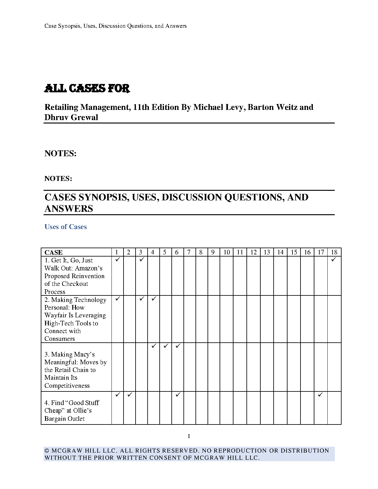 Ace your Retailing Management exam with this invaluable study resource! This comprehensive guide provides a complete set of case synopses, uses, discussion questions, and answers for all the cases in the 11th edition of Retailing Management by Michael Levy, Barton Weitz, and Dhruv Grewal. Master the concepts and prepare for success on your first attempt!