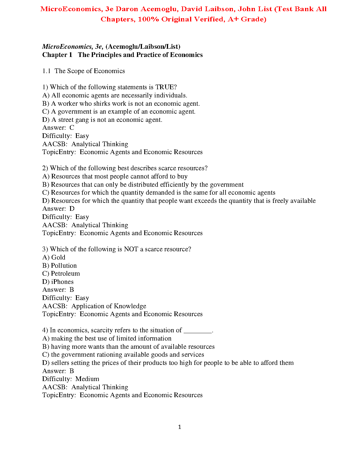 This comprehensive Test Bank for the 3rd edition of Microeconomics (Acemoglu/Laibson/List) is designed to help students master the concepts and principles of economics. It includes a wide range of questions that cover all the key topics in the textbook, ensuring a thorough understanding of the subject.