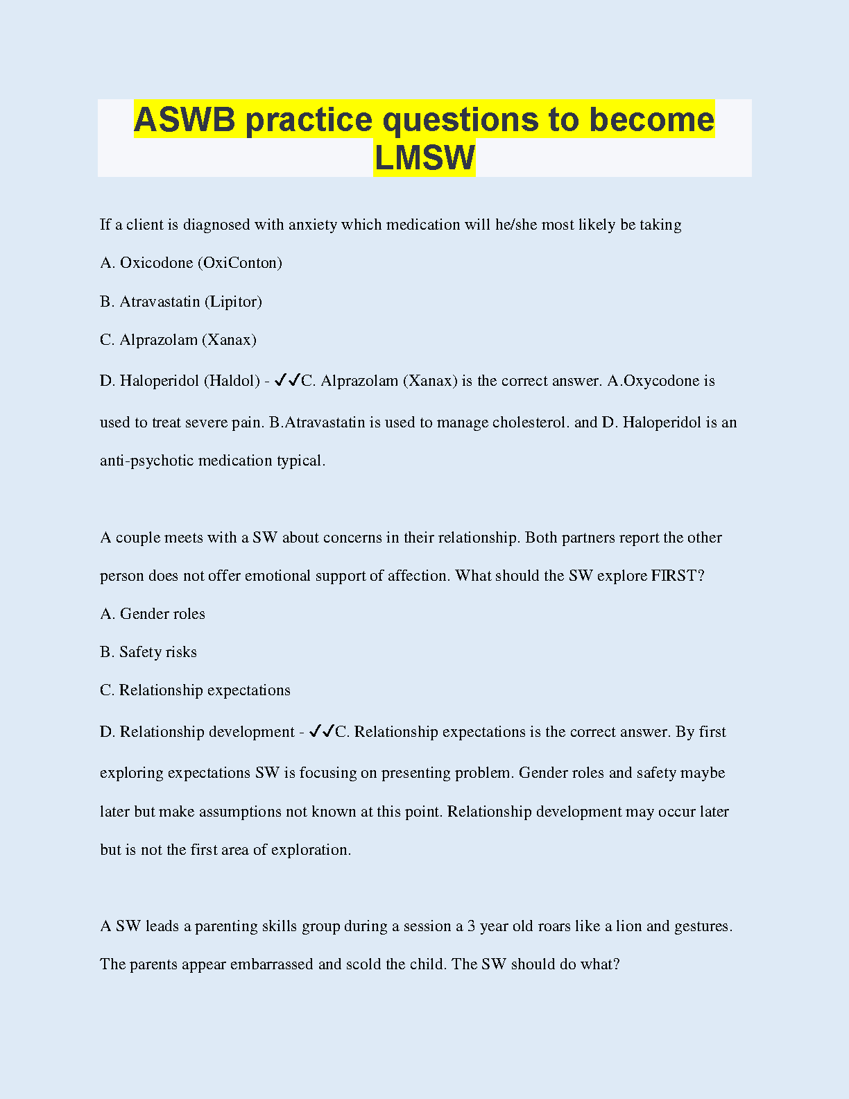 Ace your ASWB LMSW exam on the first attempt with this comprehensive practice question bank, designed for the latest exam updates. Sharpen your knowledge and boost your confidence with realistic scenarios and in-depth explanations. This resource ensures you're fully prepared to navigate the challenges and achieve your licensing goals.